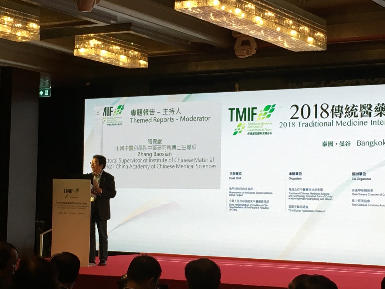 張保獻(xiàn)先生作為2018年傳統(tǒng)醫(yī)藥國(guó)際發(fā)展論壇(泰國(guó))專題報(bào)告的主持人,同時(shí)也做了一場(chǎng)關(guān)于《中國(guó)中藥的行政許可與產(chǎn)業(yè)化發(fā)展現(xiàn)狀》的專題報(bào)告。