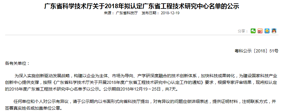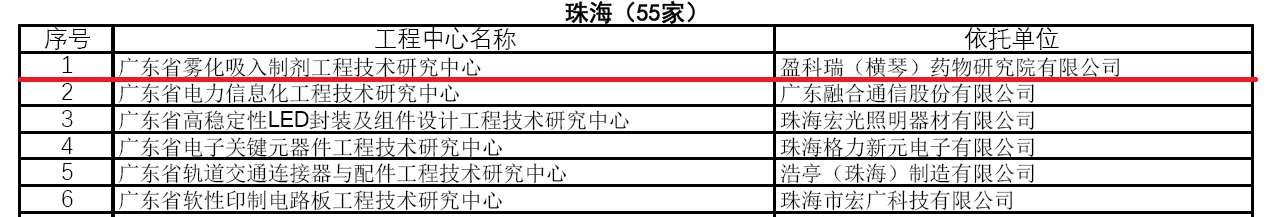 2018年12月19日,廣東省科技廳公布了2018年擬認定廣東省工程技術(shù)研究中心名單,盈科瑞(橫琴)藥物研究院的“霧化吸入制劑工程技術(shù)研究中心”成功獲得“廣東省工程技術(shù)研究中心”認定。