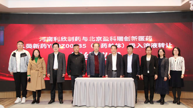 11月17日,北京盈科瑞創(chuàng)新醫(yī)藥股份有限公司與河南利欣制藥股份有限公司在河南南陽舉行戰(zhàn)略合作暨中藥單體1類新藥(YKRZ00735)吸入溶液轉(zhuǎn)讓簽約儀式。未來雙方將構(gòu)建戰(zhàn)略合作伙伴關(guān)系,并開展呼吸科管線、輸液管線等相關(guān)品種的研、產(chǎn)、銷全方位的合作。