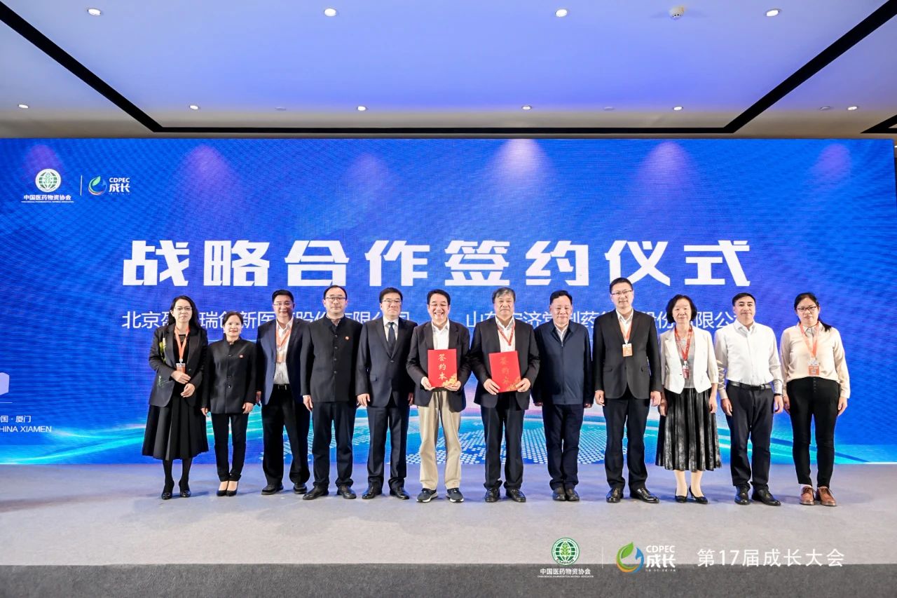 主旨演講開始之前,北京盈科瑞創(chuàng)新醫(yī)藥股份有限公司(以下簡稱“盈科瑞”)與山東宏濟(jì)堂制藥集團(tuán)股份有限公司(以下簡稱“宏濟(jì)堂”)在與會領(lǐng)導(dǎo)、嘉賓的見證下就藥品、保健食品、化妝品和食品方面的產(chǎn)品研發(fā)及產(chǎn)業(yè)化合作簽署了雙方《戰(zhàn)略合作協(xié)議》。盈科瑞董事長張保獻(xiàn)教授、宏濟(jì)堂董事長高元坤先生作為簽約代表進(jìn)行了簽約。