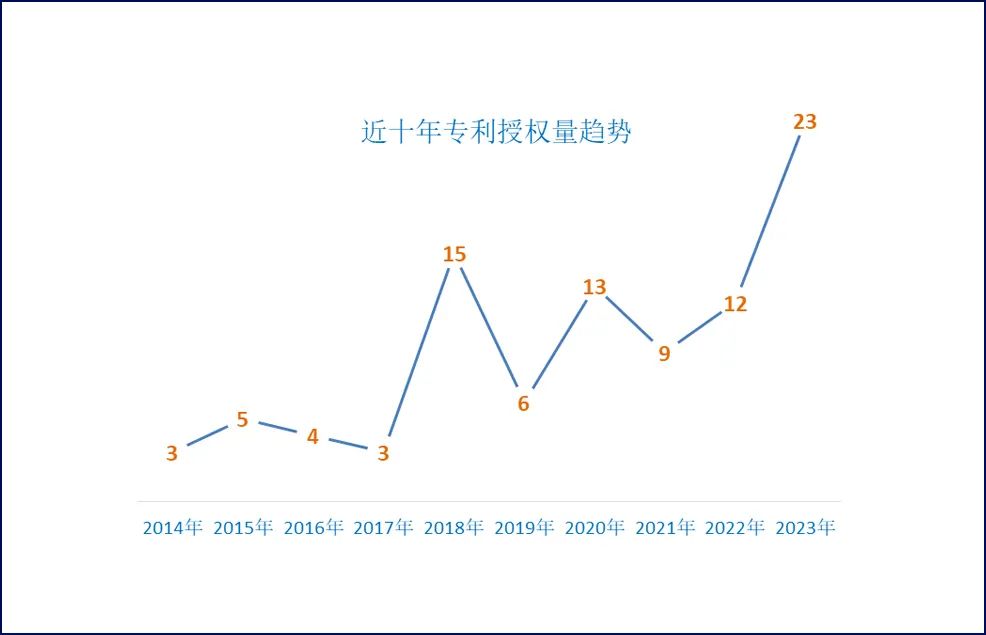 截至2023年12月,盈科瑞專利申請(qǐng)總數(shù)715件,專利授權(quán)總量突破200件。特別值得注意的是,盈科瑞專利授權(quán)量近5年來(lái)一直呈現(xiàn)上升態(tài)勢(shì),而2023年專利授權(quán)數(shù)量更是達(dá)到了23件,是2022年(授權(quán)量12件)的兩倍以上。
