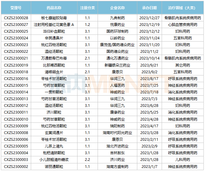 2023年國內(nèi)獲批上市的中藥新藥