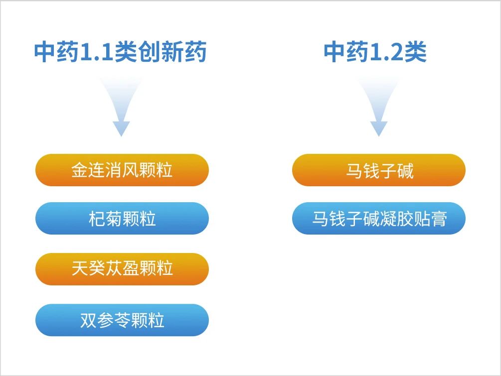 其中,中藥1.1類創(chuàng)新藥金連消風(fēng)顆粒、杞菊顆粒、天癸蓯盈顆粒和雙參苓顆粒,均由盈科瑞自主研發(fā)并作為申請人進行申報獲批,中藥1.2類馬錢子堿及其制劑馬錢子堿凝膠貼膏,為盈科瑞在中藥單體新藥上取得的又一突破性成果。
