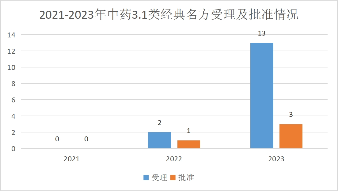 圖3 2021-2023年中藥3.1類經(jīng)典名方受理及批準情況